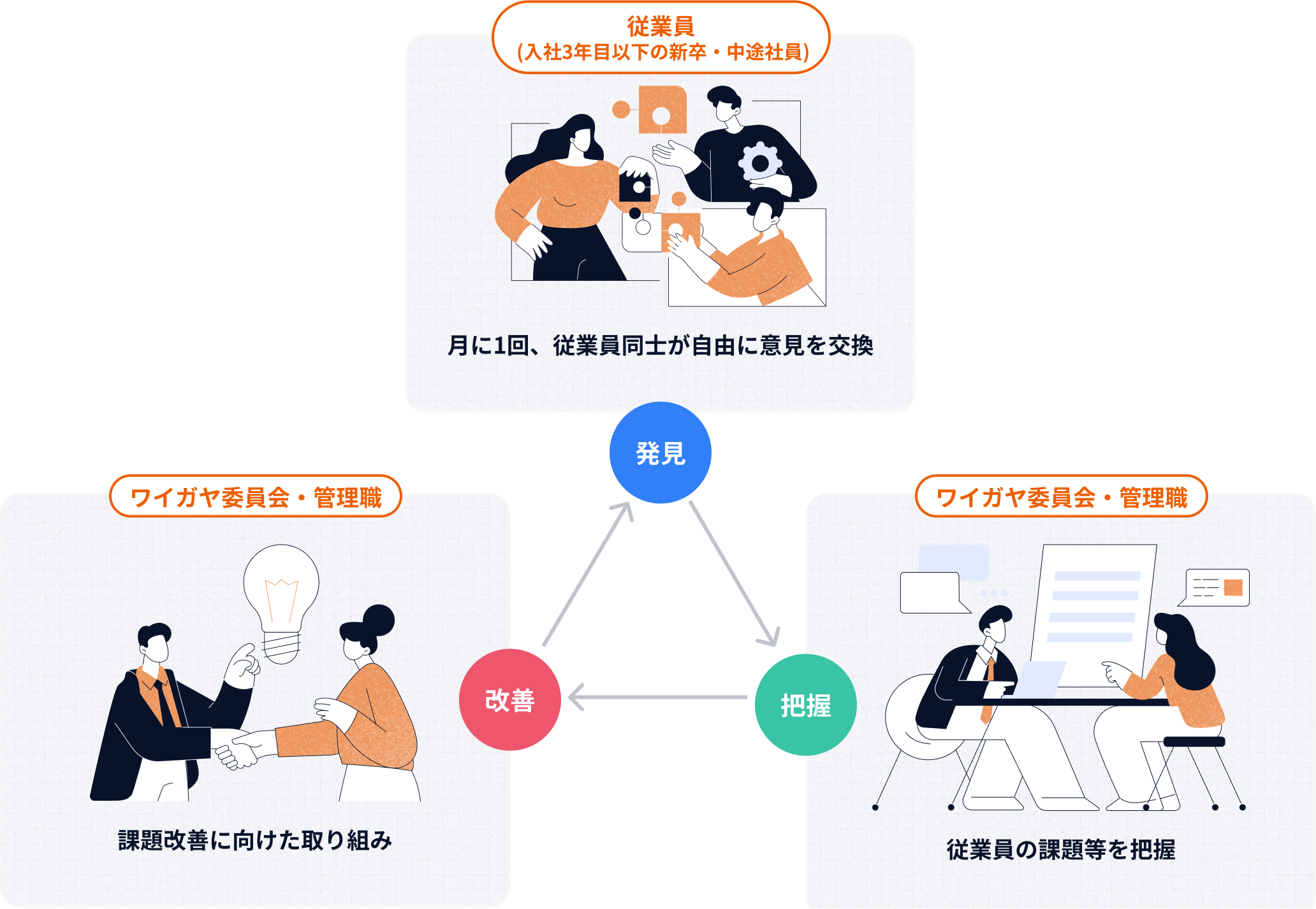 語源は「ワイワイガヤガヤ」で、同じ組織内のメンバーがざっくばらんに意見を交換することが特徴です。