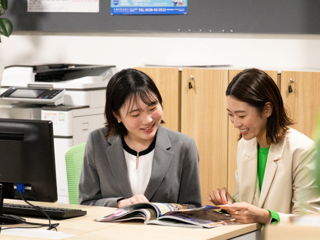 - 中途入社の方にもOJTがしっかりつくので、営業職や広告業界が初めての方でも不安なく業務に取り組めます。